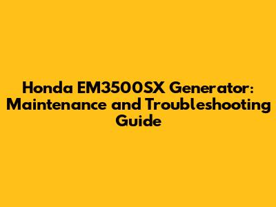 Honda EM3500SX Generator: Maintenance And Troubleshooting Guide