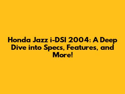 Hey car enthusiasts! Ever wondered about the Honda Jazz i-DSI 2004? This article is your ultimate guide, a deep dive into everything you need to know about this classic car. We'll be exploring its specifications, features, and why it remains a popular choice even years after its initial release. So, buckle up, and let's get started!