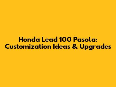 Honda Lead 100 Pasola: Customization Ideas & Upgrades