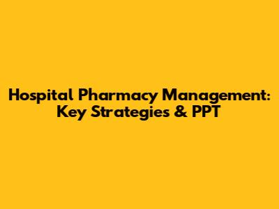 Hospital Pharmacy Management: Key Strategies & PPT