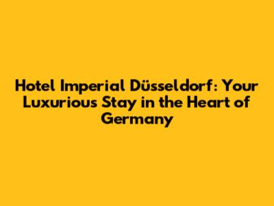 Düsseldorf, a vibrant city in western Germany, is known for its fashion industry, art scene, and bustling nightlife. If you're planning a trip to this exciting destination and seeking a luxurious and comfortable stay, look no further than the Hotel Imperial Düsseldorf. This hotel offers a blend of elegance, modern amenities, and a prime location, making it an ideal choice for both business and leisure travelers. Let's dive into why the Hotel Imperial should be at the top of your list when visiting Düsseldorf.