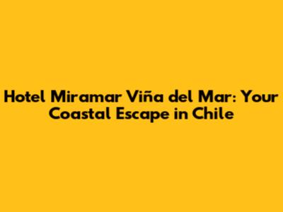 Hey there, travel enthusiasts! Are you dreaming of a getaway filled with stunning ocean views, fresh sea breezes, and the vibrant culture of Chile? Look no further than the Hotel Miramar Viña del Mar! This iconic hotel offers an unforgettable experience right on the coast of the beautiful Viña del Mar. Let's dive into everything this gem has to offer, from its prime location to the luxurious amenities that will make your stay truly special. Get ready to pack your bags, guys, because this is one adventure you won't want to miss!
