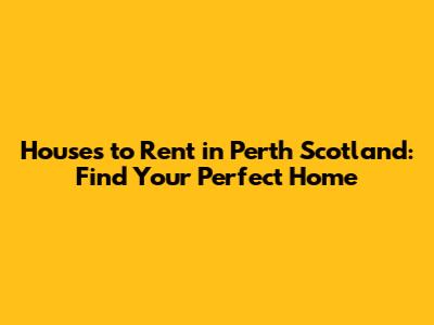Houses To Rent In Perth Scotland: Find Your Perfect Home