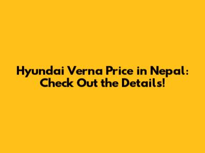 Hey guys! Are you curious about the Hyundai Verna price in Nepal? Well, you've come to the right place! In this article, we're diving deep into everything you need to know about the Hyundai Verna, its features, specs, and, most importantly, its price in the Nepalese market. Buckle up, because we're about to give you the lowdown on this popular sedan!
