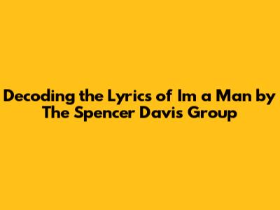 Hey music lovers! Ever gotten a song stuck in your head and just had to know what it was all about? Well, today, we're diving deep into the electrifying track "I'm a Man" by The Spencer Davis Group. This iconic song isn't just a catchy tune; it's a statement, a declaration of identity, and a whole lot of raw energy packed into a few minutes. So, buckle up, guys, because we're about to dissect the lyrics, explore their meaning, and uncover the magic behind this classic.