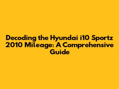 Understanding the Basics of i10 Sportz 2010 Mileage