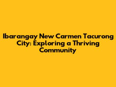 Ibarangay New Carmen Tacurong City: A Guide