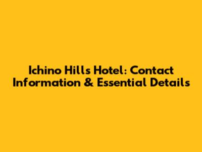 Ichino Hills Hotel: Contact Information & Essential Details
