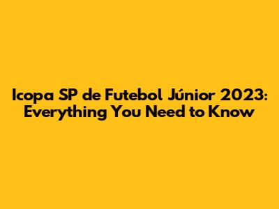 Icopa SP De Futebol Júnior 2023: Everything You Need To Know