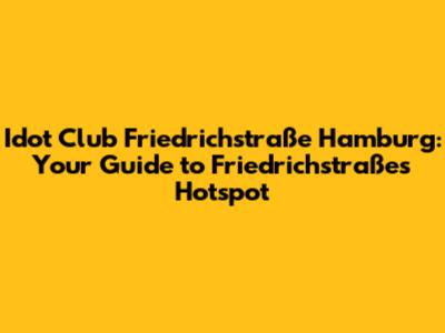 Alright, party people! Let's dive into the heart of Hamburg's nightlife and explore the Idot Club on Friedrichstraße. This isn't just another club; it's a vibe, a scene, and a place where memories are made (or maybe slightly blurred, depending on your drink of choice!). If you're planning a trip to Hamburg or just looking for a new spot to let loose, you've come to the right place. We're going to break down everything you need to know about the Idot Club, from the music to the crowd to the overall atmosphere. Get ready to experience Hamburg's nightlife like a local!