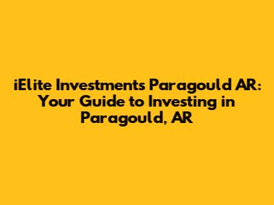 Let's dive into the world of iElite Investments in Paragould, Arkansas! If you're looking to make smart investment decisions in this charming Southern town, you've come to the right place. We'll explore what iElite Investments is all about, why Paragould is an attractive investment spot, and how you can make the most of your opportunities. Whether you're a seasoned investor or just starting, this guide will equip you with the knowledge to navigate the Paragould investment landscape.