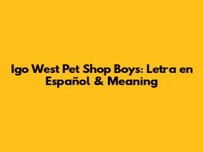 Igo West Pet Shop Boys: Letra En Español & Meaning