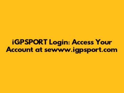 IGPSPORT Login: Access Your Account At Sewww.igpsport.com