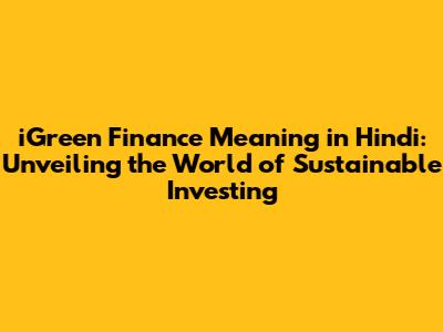 Hey guys! Ever heard of iGreen Finance and wondered what it's all about, especially in the context of Hindi? Well, you're in the right place! We're diving deep into the meaning of iGreen Finance in Hindi, breaking down its core concepts, and exploring its exciting world. It's all about understanding how your money can make a positive impact on the environment while potentially growing your wealth. So, let's get started and unravel the mysteries of iGreen Finance together! Ready to transform your financial understanding? Let's go!