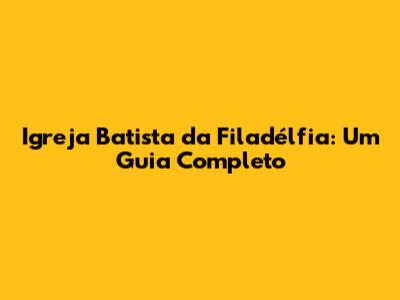 Igreja Batista Da Filadélfia: Um Guia Completo