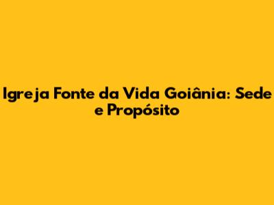 Igreja Fonte Da Vida Goiânia: Sede E Propósito