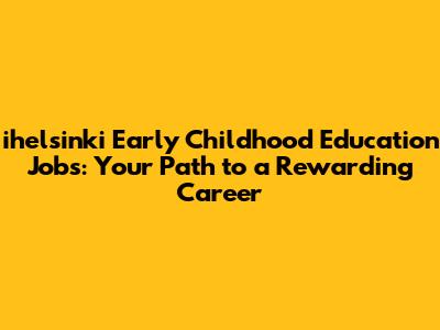 Ihelsinki Early Childhood Education Jobs