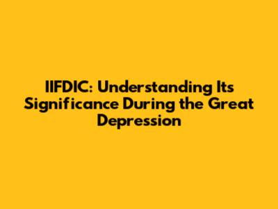 IIFDIC: Unveiling Its Role In The Great Depression