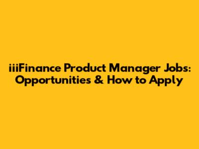 IiiFinance Product Manager Jobs: Opportunities & How To Apply