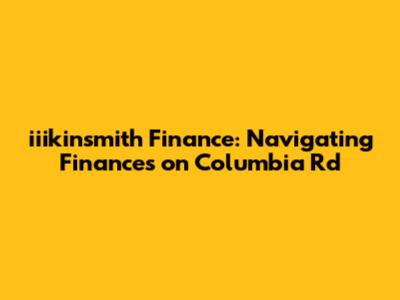 Iiikinsmith Finance: Your Guide To Columbia Rd
