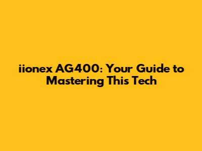 Iionex AG400: Your Guide To Mastering This Tech