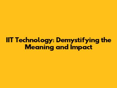 IIT Technology: Demystifying The Meaning And Impact