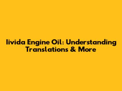 Iivida Engine Oil: Understanding Translations & More