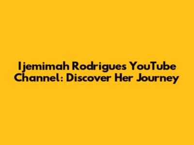 Ijemimah Rodrigues' YouTube Channel: Discover Her Journey