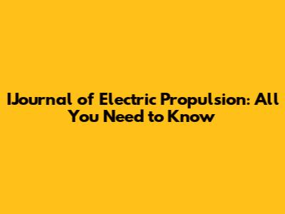 IJournal Of Electric Propulsion: All You Need To Know