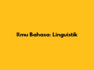 Ilmu Bahasa: Linguistik