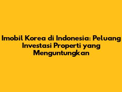 Imobil Korea Di Indonesia: Peluang Investasi Properti Yang Menguntungkan