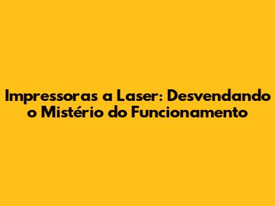 Impressoras A Laser: Desvendando O Mistério Do Funcionamento