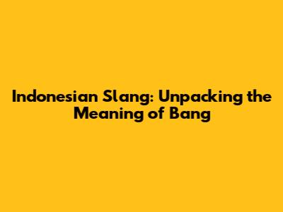 Indonesian Slang: Unpacking The Meaning Of 'Bang'