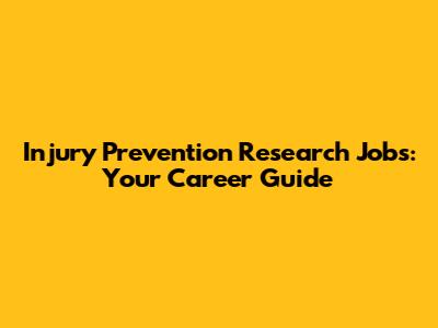 Injury Prevention Research Jobs: Your Career Guide