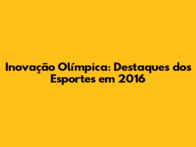 Inovação Olímpica: Destaques Dos Esportes Em 2016