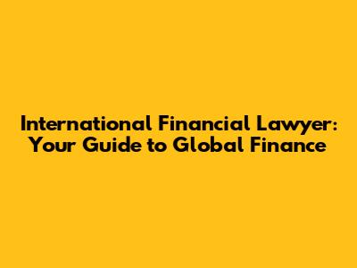 International Financial Lawyer: Your Guide To Global Finance