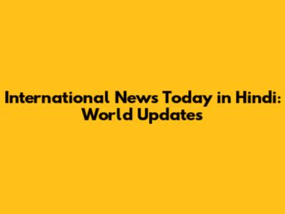 International News Today In Hindi: World Updates