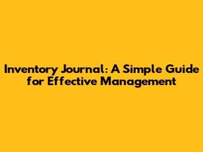 Inventory Journal: A Simple Guide For Effective Management