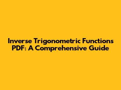 Inverse Trigonometric Functions PDF: A Comprehensive Guide