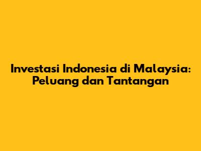 Investasi Indonesia Di Malaysia: Peluang Dan Tantangan