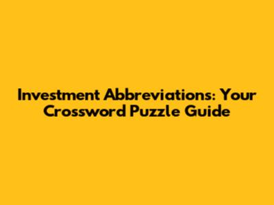 Investment Abbreviations: Your Crossword Puzzle Guide