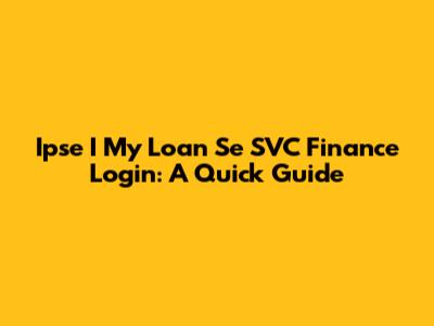 Ipse I My Loan Se SVC Finance Login: A Quick Guide
