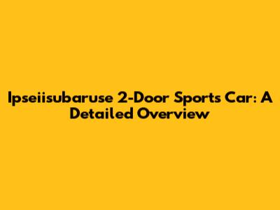 Ipseiisubaruse 2-Door Sports Car: A Detailed Overview