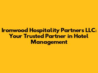 Hey everyone! Are you looking for a reliable and experienced partner to help you navigate the exciting world of hotel management? Look no further! Ironwood Hospitality Partners LLC is here to provide top-notch services and expertise to maximize your hotel's potential. We're not just another management company; we're a team of passionate hospitality professionals dedicated to delivering exceptional results. Ironwood Hospitality Partners LLC is a name you can trust. We have a proven track record of success. We understand the unique challenges and opportunities within the hospitality industry. We are committed to helping our clients thrive. Ironwood Hospitality Partners LLC provides a comprehensive suite of services. These services are designed to meet the diverse needs of hotel owners and investors. Our focus is on achieving operational excellence, improving guest satisfaction, and driving profitability. The team is dedicated to providing tailored solutions. Ironwood Hospitality Partners LLC is able to meet the specific requirements of each project. We’re all about creating lasting partnerships and helping you achieve your goals. Let's delve deeper into what makes Ironwood Hospitality Partners LLC the right choice for your hotel management needs.