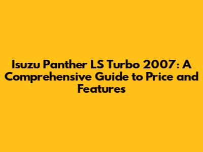 Hey guys! Are you curious about the Isuzu Panther LS Turbo 2007? This article is your one-stop shop for everything you need to know about this popular Indonesian MPV (Multi-Purpose Vehicle). We'll dive deep into its price, features, and what makes it a solid choice for many families and businesses. Let's get started!