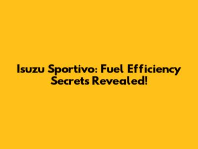 Isuzu Sportivo: Fuel Efficiency Secrets Revealed!