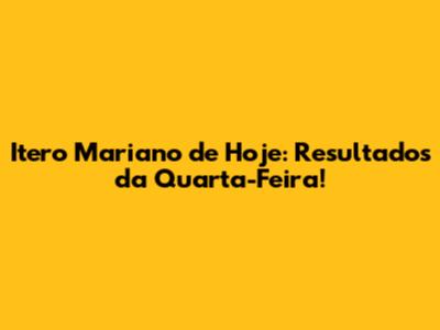 Itero Mariano De Hoje: Resultados Da Quarta-Feira!