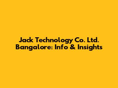 Jack Technology Co. Ltd. Bangalore: Info & Insights