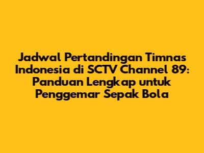 Guys, are you ready to cheer for our beloved Garuda squad? As a die-hard fan, you definitely don't want to miss a single match. This comprehensive guide will give you everything you need to know about the schedule of the Indonesian National Team's matches broadcast on SCTV, specifically channel 89. Let's dive in and make sure you're fully prepared to support our heroes on the field! This guide also helps you to not miss any game! Let's go!