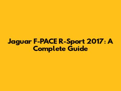 Jaguar F-PACE R-Sport 2017: A Complete Guide